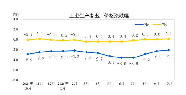 受国内部分行业供需关系改善、国际大宗商品价格传导等因素影响,工业生产者出厂价格指数(PPI)环比由上月持平转为上涨0.1%,为年内首次上涨;同比下降2.1%,降幅比上月收窄0.2个百分点,连续第3个月收窄。